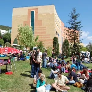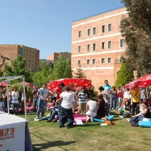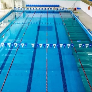 Our sports facilities cover a wide range of indoor and outdoor branches, offering students many opportunities for exercise. The indoor facilities, located in the Recreational Hall, include two volleyball and basketball courts – one with tiered spectator seating – a squash court, a fitness center, a semi-Olympic swimming pool – again, with seating area – and a table tennis area. These are complemented by outdoor facilities like a swimming pool, sports areas for basketball, volleyball and tennis, and an Astroturf soccer pitch.