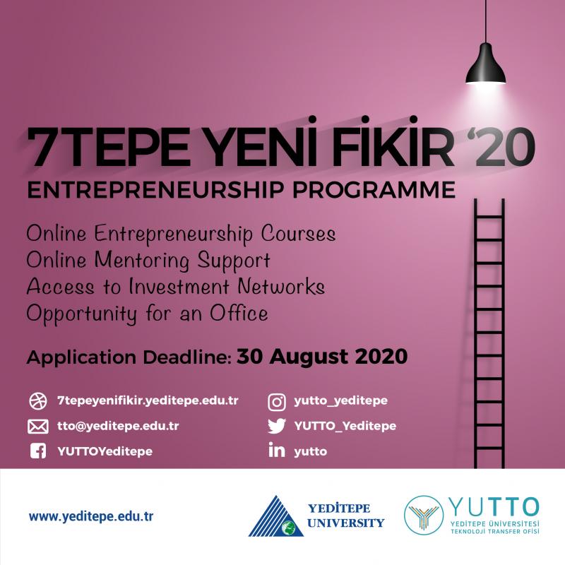 YUTTO is looking for technology entrepreneurs of Yeditepe, who will also be supported with online entrepreneurship courses and mentorship. Applications have started for 7Tepe Yeni Fikir 2020 (New Ideas 2020) Entrepreneurship Acceleration Program. Apply to us until 30th of August with an innovative business idea and let us make it a commercial reality together!