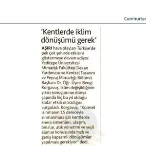 Assistant Prof. Dr. Bengi Korgavuş, who is also the Vice Dean of the Faculty of Architecture at Yeditepe University and the Head of the Department of Urban Design and Landscape Architecture, made statements regarding climate change and the current state of our cities.