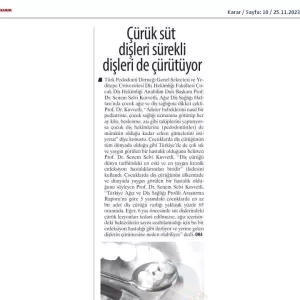Stating that dental caries in children is a very common and widespread disease in Türkiye as in the whole world, Prof. Dr. Senem Selvi Kuvvetli said, "Dental caries is one of the oldest and most common chronic infectious diseases in the history of the world." In 2018, Türkiye's Oral and Dental Health Profile Research Report was prepared as a result of a study conducted under the control of the Ministry of Health. Providing information about the report, Prof. Dr. Kuvvetli noted the following: