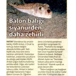 In Hatay's İskenderun district, a family of seven was hospitalized after consuming Pufferfish and suffering from poisoning. One member of the poisoned family was intubated. Prof. Dr. Ahmet Aydın provided information about the toxin found in Pufferfish and the measures to take after poisoning, stating, “Pufferfish, which contains the toxin tetrodotoxin, is very dangerous. This toxin is highly potent. Even a milligram, a tiny amount equivalent to the tip of a teaspoon, can kill an adult weighing 70 kilograms. Consumption of a pufferfish usually results in exposure to this amount of toxin. Seventy percent of pufferfish consumption cases result in death.