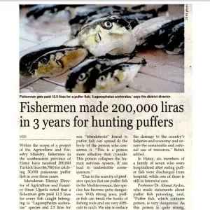 "Fishermen are paid for each pufferfish tail they catch. Thus, efforts are being made to reduce and eliminate this species that is increasing in our seas. This was a protective and excellent measure. The mentality of 'I'd eat anything that comes out of the sea' must be abandoned. Do not eat unknown fish. More measures must be taken to prevent this fish from proliferating in our seas."