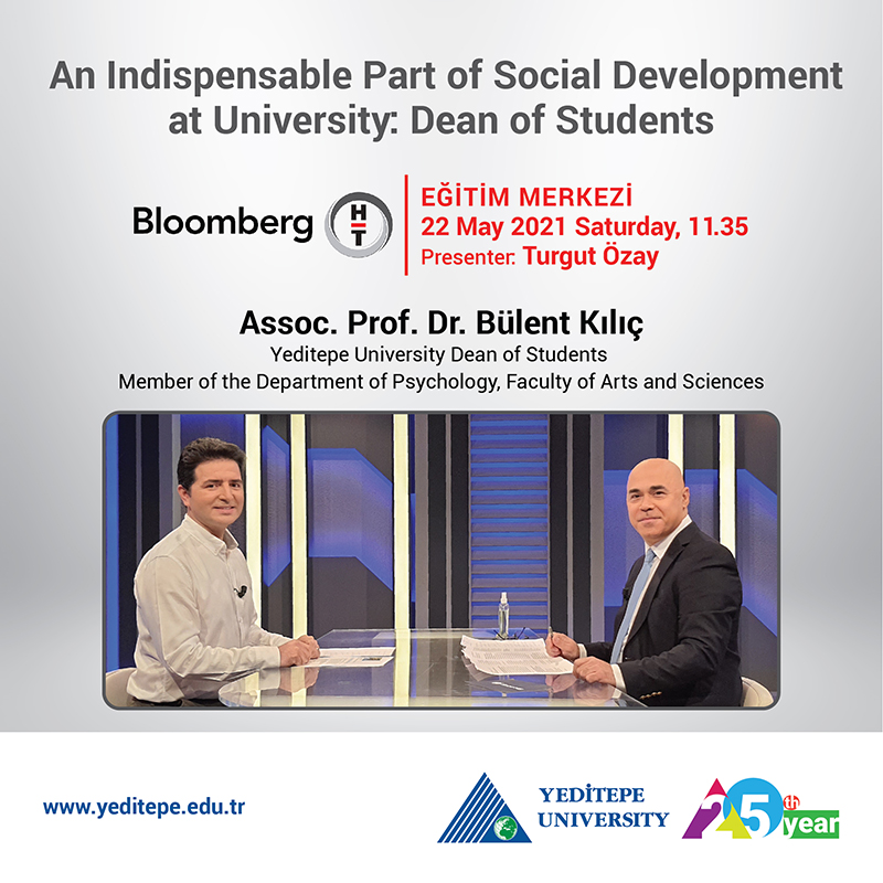 Dean of Students at Yeditepe University as well as a member of the Department of Psychology at the Faculty of Arts and Sciences, Assoc. Prof. Dr. Bülent Kılıç will be hosted by Turgut Özay on 22 May, Saturday, at 11.35. Bülent Kılıç will talk about the office of Dean of Students, which stands beside students from their first day at the campus onwards, supporting them as a whole with cultural activities, club activities, healthcare, sports events and career development services.
