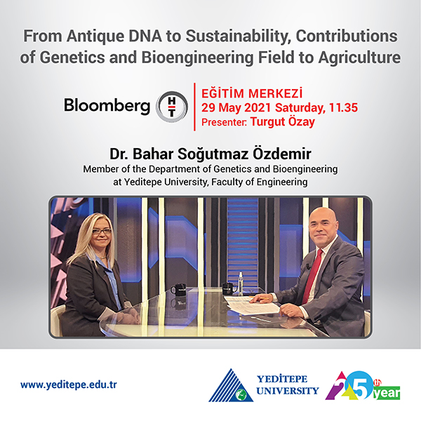 Member of the Department of Genetics and Bioengineering at Yeditepe University’s Faculty of Engineering, Dr. Bahar Soğutmaz Özdemir will be hosted by Turgut Özay on 29 May Saturday, at 11.35, on Eğitim Merkezi. Özdemir will provide information regarding the R&D efforts that are conducted in the department, such as “Agricultural Improvement”, “Agricultural Digitalization” and “Antique DNA”, for contributing to field of agriculture and sustainability in agriculture.