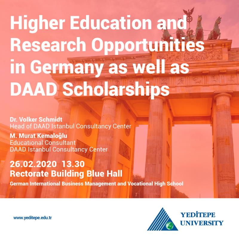 In this event İstanbul Center Director Dr. Volker Schmidt and Education Consultant, Mr. M. Murat Kemaloğlu from DAAD (Deutscher Akademischer Austauschdienst-German Academic Exchange Service) will explain the Higher Education, Research and Scholarship Opportunities in Germany. We would like to welcome all our students both in and out of our department.
