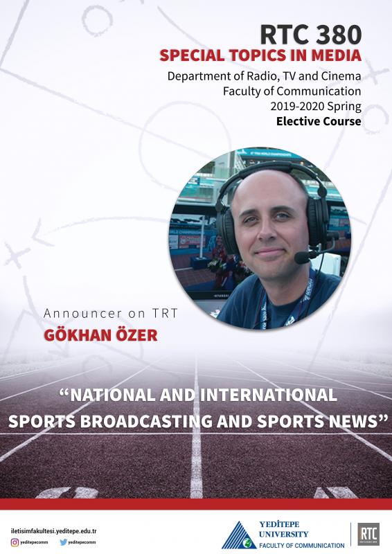 Course RTC 380, Special Topics in Media, which will cover the topics of "National and International Sports Broadcasting and Sports News" and be given by TRT commentator Gökhan Özer, is open for all our students who are interested in the subject.