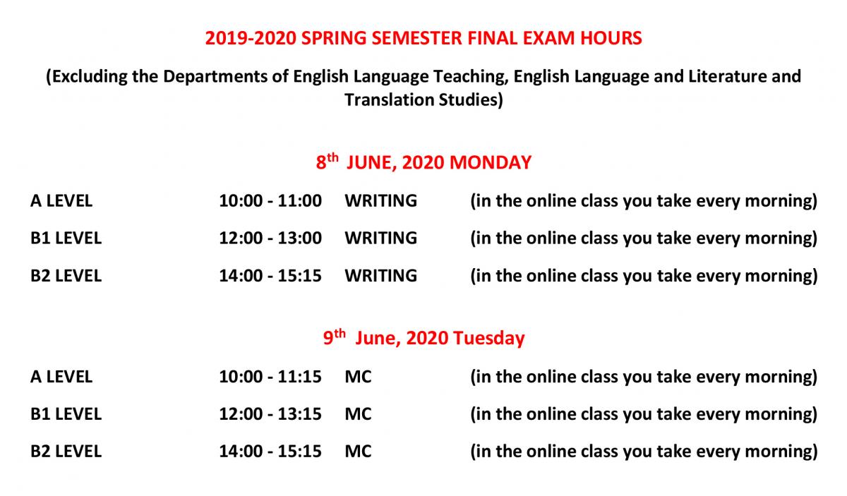 Preparatory School 2019-2020 Spring Semester Final Exam Hours