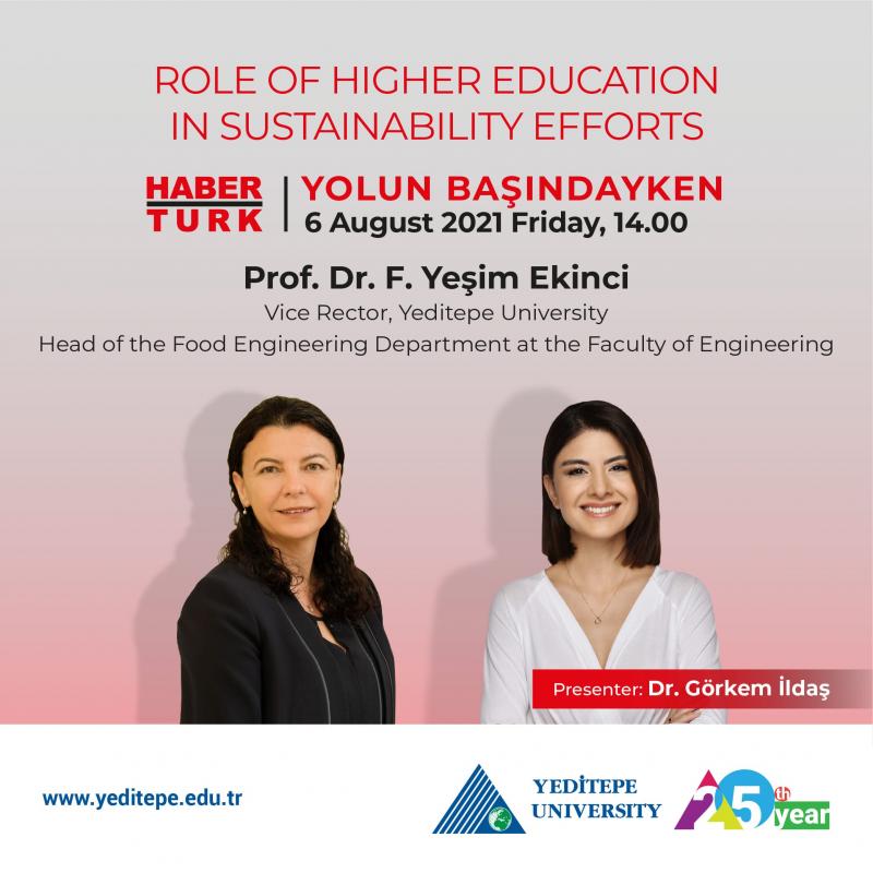 Vice Rector of Yeditepe University and Head of the Food Engineering Department at the Faculty of Engineering, Prof. Dr. Fatma Yeşim Ekinci will be hosted by Dr. Görkem İldaş on Habertürk TV’s Yolun Başındayken program on 6 August 2021, Friday, at 14.00. Prof. Dr. F. Yeşim Ekinci will talk about the role of higher education in sustainability efforts.