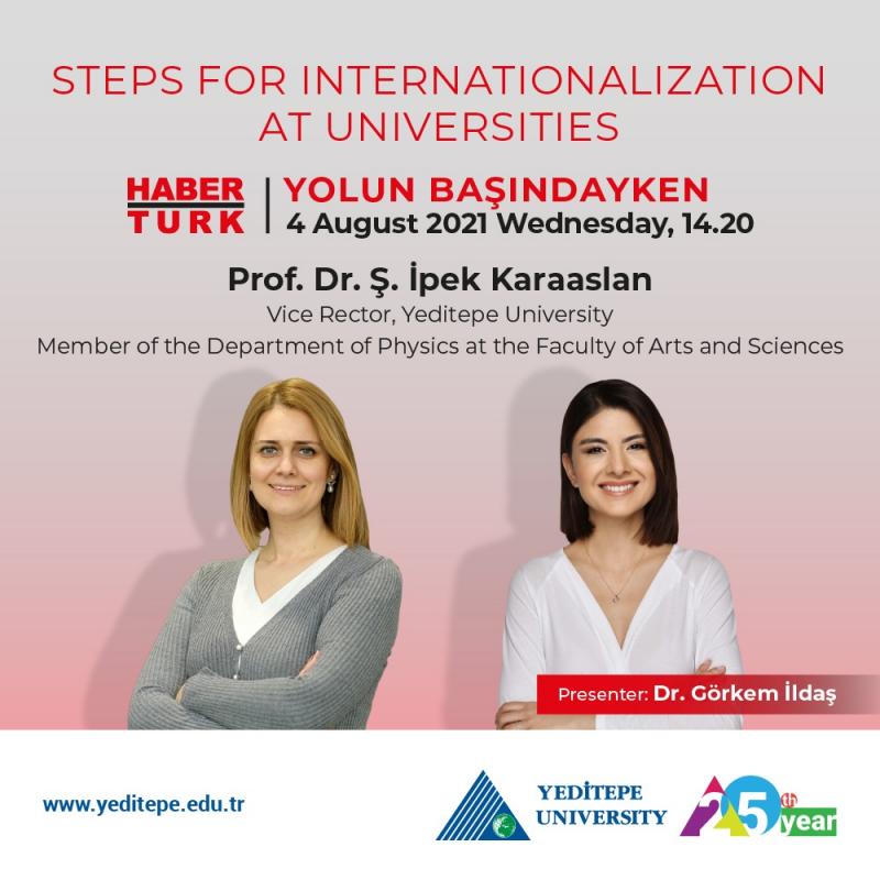 Vice Rector of Yeditepe University and member of the Department of Physics at the Faculty of Arts and Sciences, Prof. Dr. Ş. İpek Karaaslan will be hosted by Dr. Görkem İldaş on Habertürk’s Yolun Başındayken profram on 4 August 2021, Wednesday, at 14.20. Prof. Dr. Karaaslan will share her views on the steps a university has to take for internationalization, as well as Yeditepe University’s international agreements and cooperations.