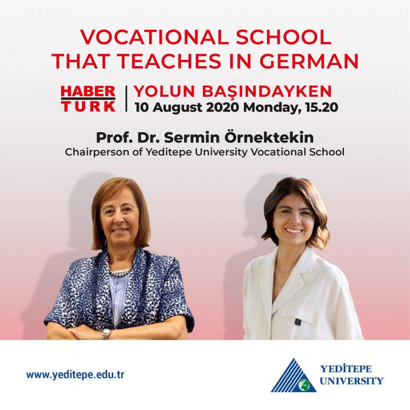 Chairperson of the Vocational School of Yeditepe University, Prof. Dr. Sermin Örnektekin, will be hosted on Habertürk’s Yolun Başındayken show on 10 August, 2020 Monday at 15.20 and answer Dr. Görkem İldaş’s questions. Prof. Dr. Sermin Örnektekin will describe Yeditepe University Vocational School, a pioneering institution in Turkey by providing education in German.