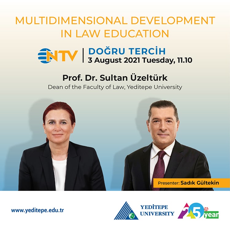 Dean of the Faculty of Law at Yeditepe University, Prof. Dr. Sultan Üzektürk, will be hosted by Sadık Gültekin on NTV’s Doğru Tercih program on 3 August 2021, Tuesday, at 11.10. Prof. Dr. Üzeltürk will provide insights for multidimensional development of the student in law education and have important recommendations for university candidates looking to start their law education.