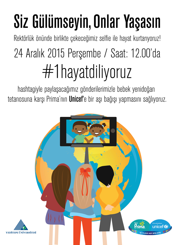 24 Aralık 2015 günü saat 12.30'da Rektörlük önünde çekeceğimiz selfie ile Unicef'e bir aşı bağışlıyoruz