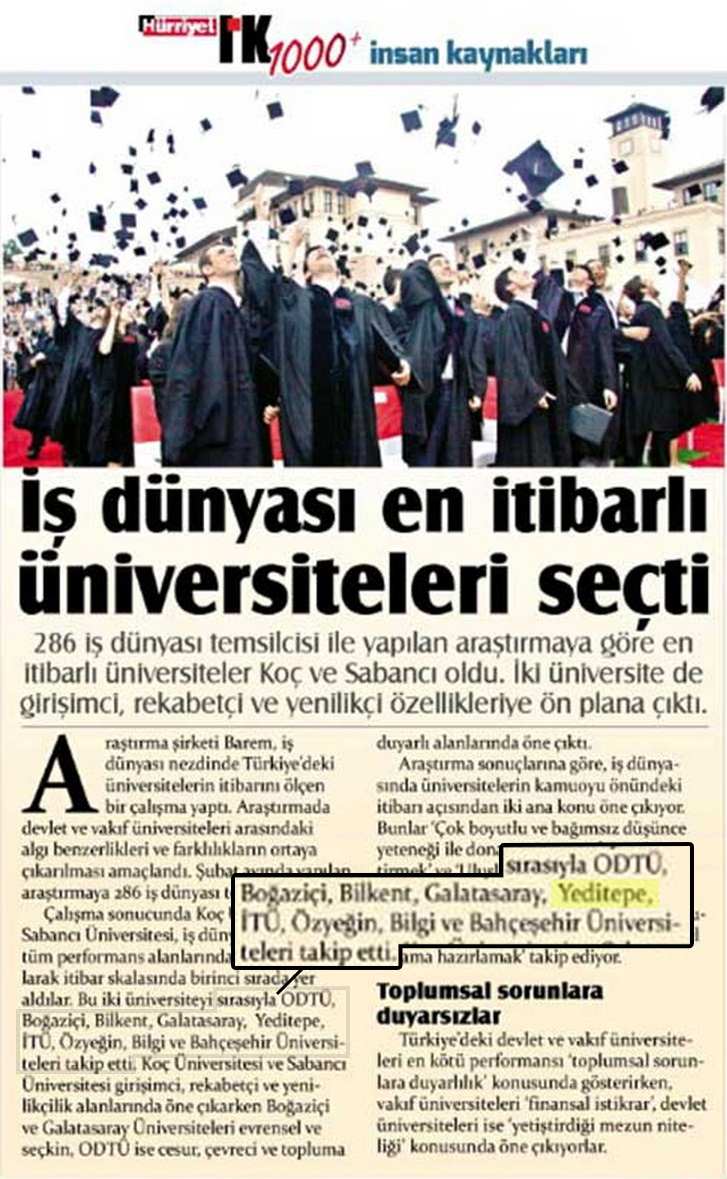 Yeditepe Üniversitesi en itibarlı üniversiteler arasında