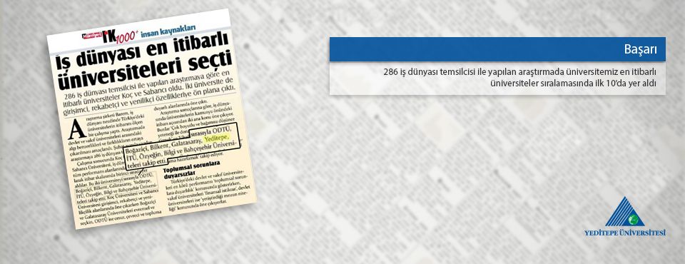Üniversitemiz, 286 iş dünyası temsilcisi ile yapılan araştırmada en itibarlı üniversiteler sıralamasında ilk 10’da yer alma başarısı gösterdi.