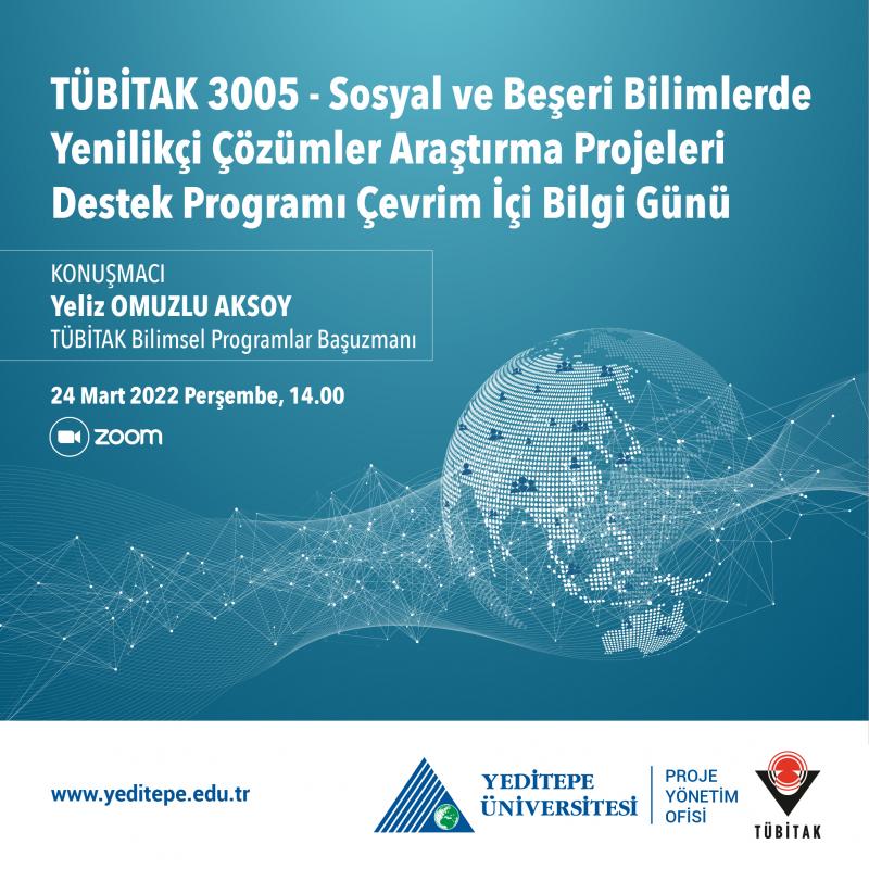 Üniversitemiz ve TÜBİTAK iş birliği ile Zoom üzerinden TÜBİTAK 3005- Sosyal ve Beşeri Bilimlerde Yenilikçi Çözümler Araştırma Projeleri Destek Programı Çevrim içi bilgi günü düzenlenecektir.