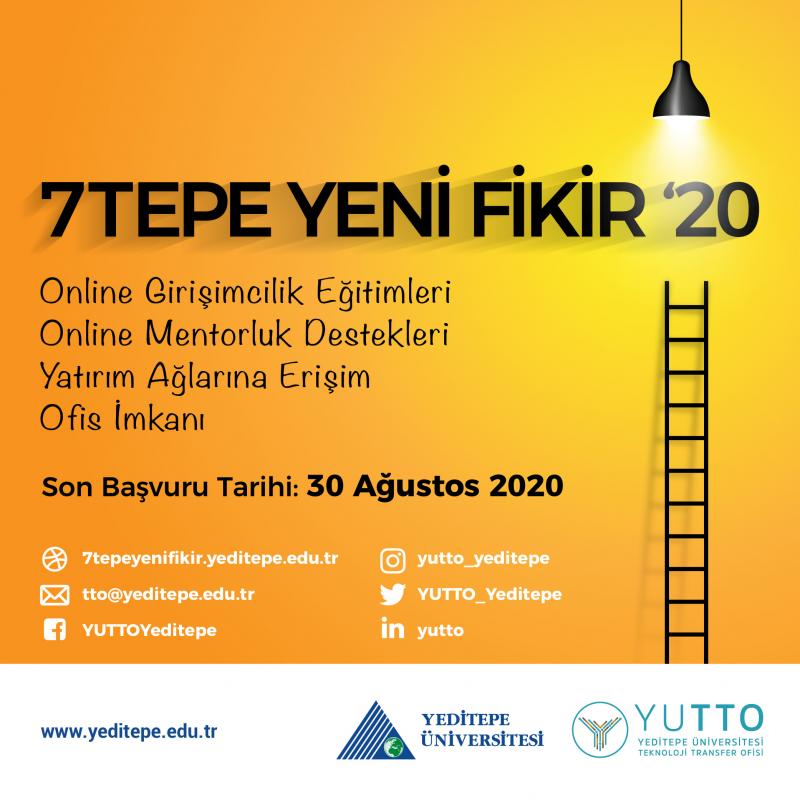 YUTTO, online girişimcilik eğitimleri ve mentorluklarla destekleyeceği Yeditepeli teknoloji girişimcilerini arıyor! Bu yıl beşincisi gerçekleştirilecek olan 7Tepe Yeni Fikir 2020 Girişim Hızlandırma Programı başvuruları alınmaya başlandı. 30 Ağustos'a kadar yenilikçi iş fikrinizle başvurun, fikrinizi birlikte ticarileştirelim!