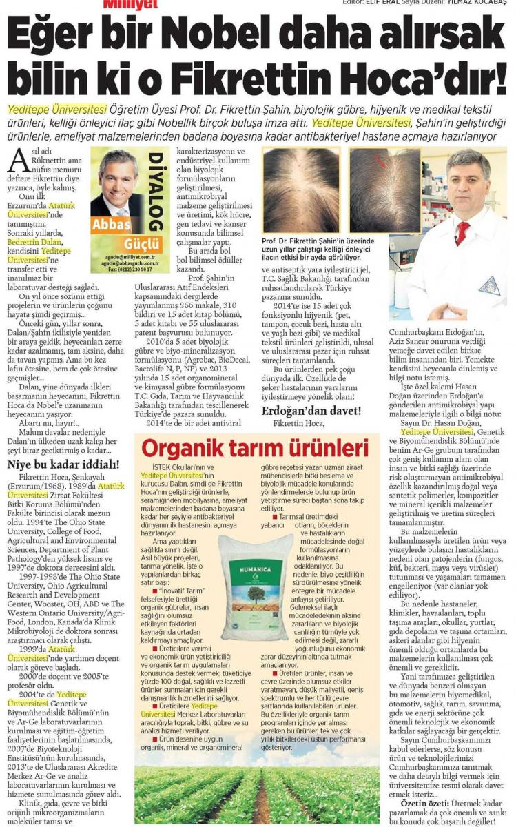 Abbas Güçlü Milliyet Gazetesi'nde yer alan Diyalog başlıklı köşesinde Yeditepe Üniversitesi Genetik ve Biyomühendislik Bölüm Başkanı Prof. Dr. Fikrettin Şahin'e geniş yer verdi