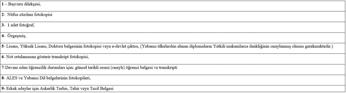 İstenen Belgeler: