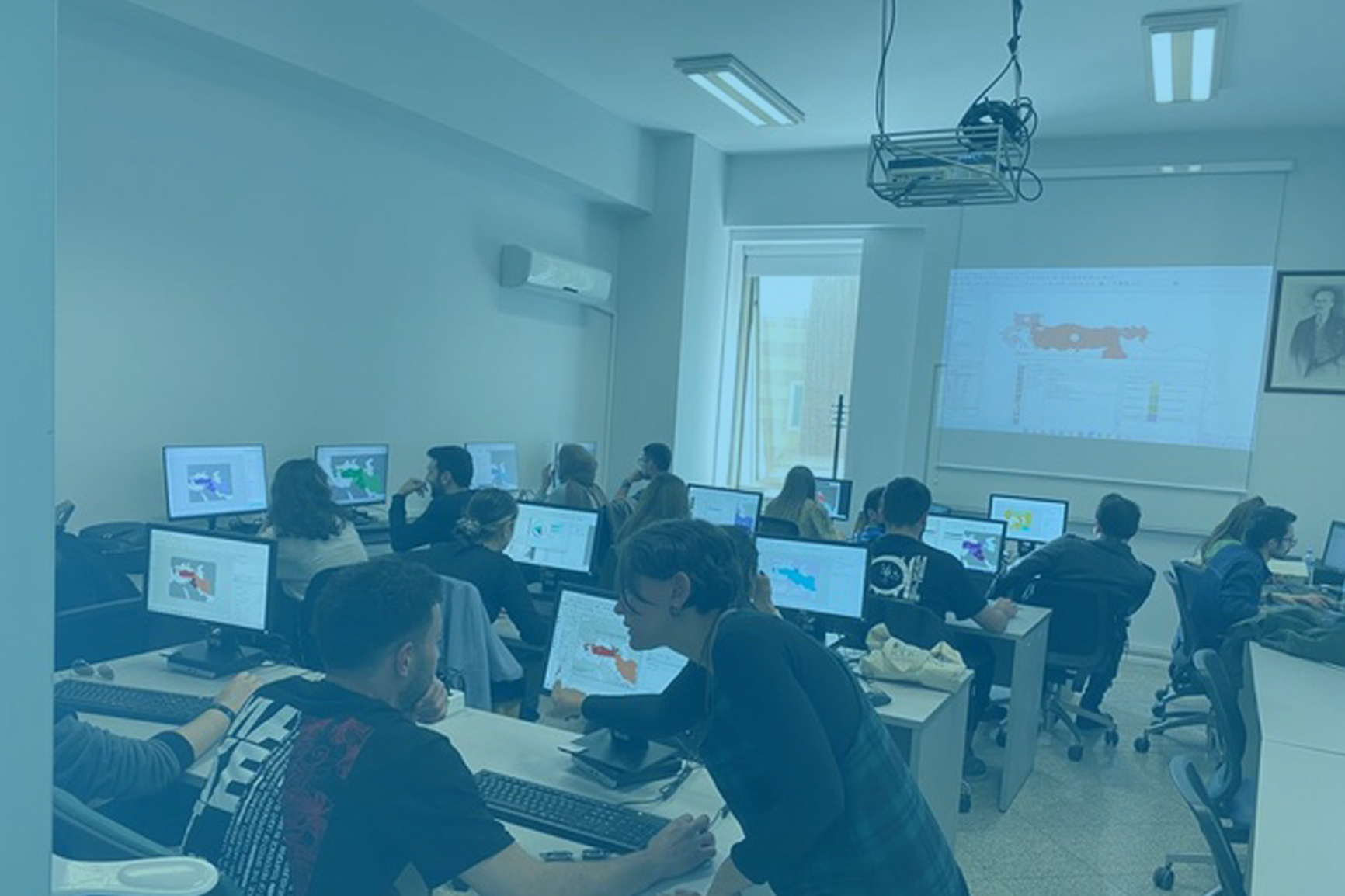 Laboratuvarımızda 15 bilgisayar bulunmakta olup, öncelikli olarak “QGIS” ve lisanslı “ARCGIS PRO” (Educational Academic Departmental Medium Term Concurrent Use License - 50 Users) programları ile harita üretilmektedir. Bu programların yanı sıra, “Cartes & Données” ve “Tableau Public” programları da kullanılmaktadır.