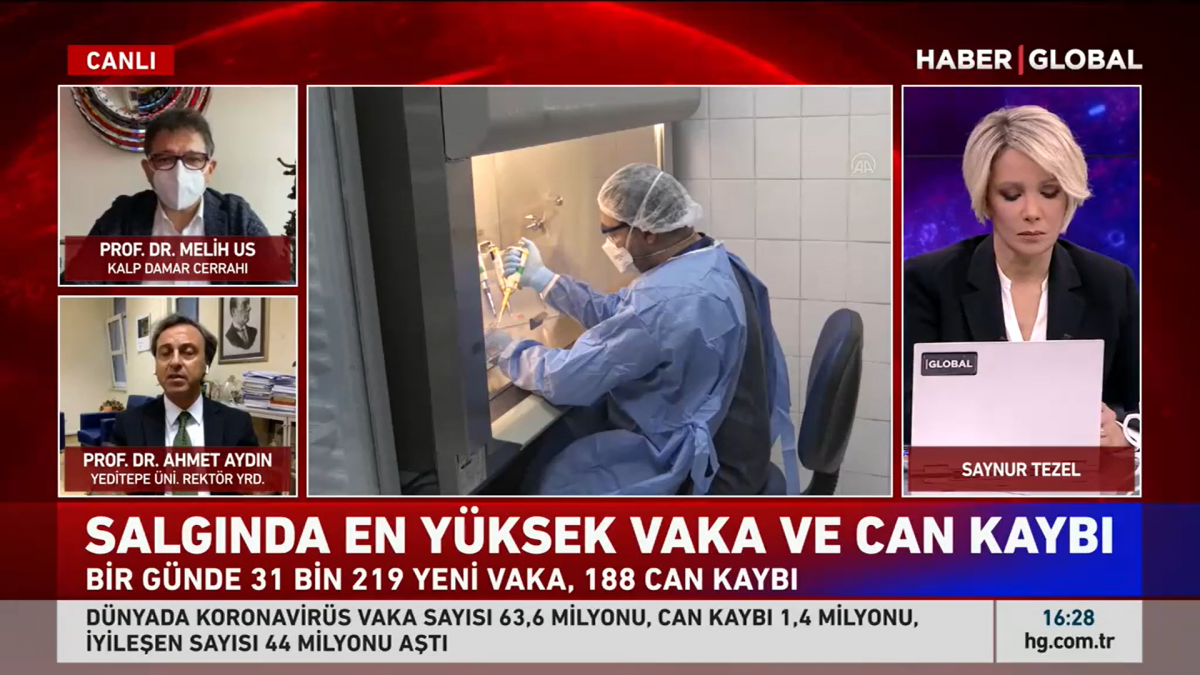 Üniversitemiz Rektör Yardımcısı ve Eczacılık Fakültesi Farmasötik Toksikoloji Anabilim Dalı Başkanı Prof. Dr. Ahmet Aydın, Haber Global’de Günün Nabzı programında, aşı konusundaki açıklamaları değerlendirdi. Aşılama sürecinin başlamasının çok önemli olduğunu ancak şu an için normal yaşama dönmemizi sağlamayacağını vurgulayan Prof. Dr. Ahmet Aydın, “Aşılama ile sağlık kapasitesini aşmayacağız, insanların ağır hasta olmasını engelleyeceğiz. Bunu yaparak bir ışık görebiliriz… Geride 70 milyon insan var. Dolayısıyla yine tedbirler çok önemli olacak” dedi.