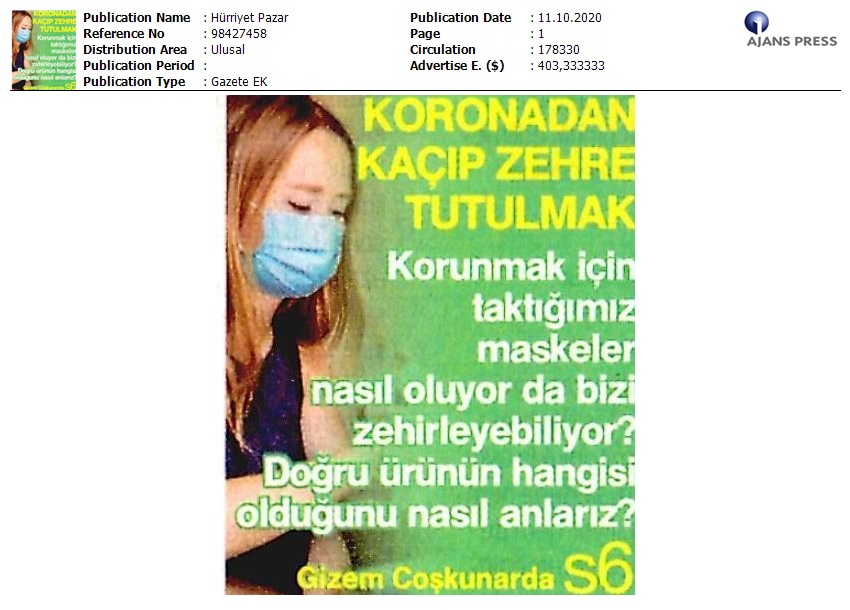 Prof. Dr. Ahmet Aydın, özetle şunları kaydetti: “Maskenin filtrasyon özelliği ayrı, cilde uyumluluğu ayrı konu. Cilde temas ettiğinde tahriş (irritasyon), alerji gibi reaksiyonlara sebep olmamalı. Üç katlı maske filtrasyon özelliğine sahiptir ancak uzun süre yüzümüzde kaldığından cilt güvenliği için üç ayrı test yapılması gerekir. Biz laboratuvarımızda başvuru yapan üretici firmaların maskelerini test ediyoruz… Piyasada dezenfektan adı altında su dolu şişelere sık rastlanıyor. Üretim yeri, üretim tarihi ve barkodu olan, bilinen markalar tercih edilmeli. Medikalciler ya da eczaneler en iyi adres.”