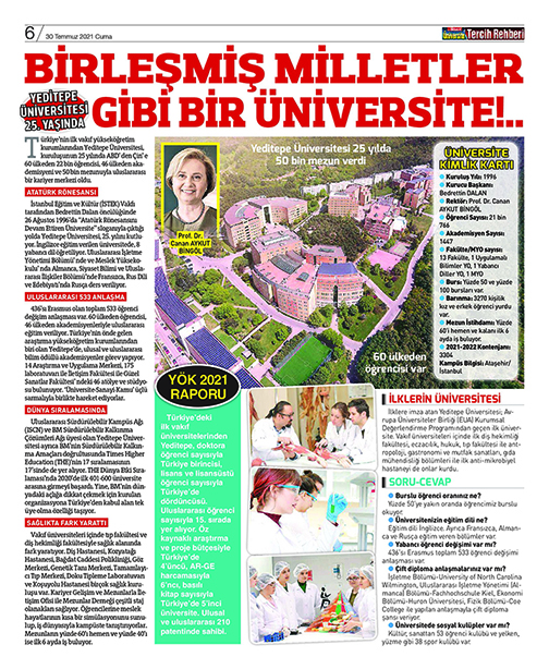 Türkiye’nin ilk vakıf yükseköğretim kurumlarından biri olan Yeditepe Üniversitesi, 25 yılda verdiği 50 bine yakın mezunu ve 22 bine yakın öğrencisiyle Türkiye’nin kariyer merkezi oldu.