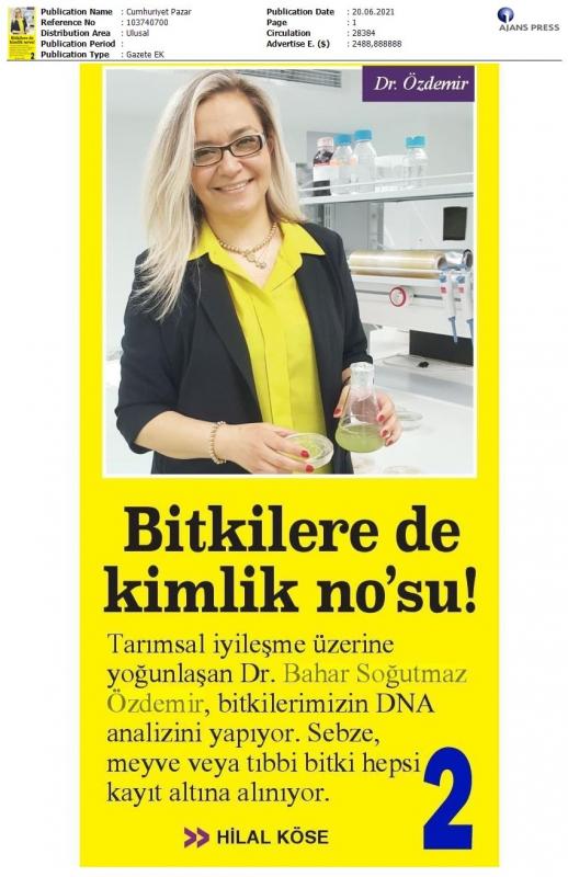 Yeditepe Üniversitesi Mühendislik Fakültesi Genetik ve Biyomühendislik Bölümü Dr. Öğr. Üyesi Bahar Soğutmaz Özdemir, moleküler genetik, bitki biyoteknolojisi, biyotik strese karşı tarımsal iyileştirme gibi konularda araştırmalar yürütüyor. Binlerce yıl toprak altında kalmış tohumda DNA analizi yapıyor, ülkemize özgü bitkilere genetik kimlik veriyor, gelecek nesiller için bitki donduruyor.