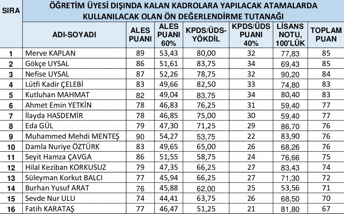 14.01.2021 tarihinde Resmi Gazetede yayınlanan Üniversitemiz Mühendislik Fakültesi Biyomedikal Mühendisliği Bölümü’nde ilan edilen 2 adet Araştırma Görevlisi kadrosuna yapılan başvurular değerlendirilmiş olup, ön değerlendirme sonuçlarına göre aşağıda ismi yazılı kişiler 12.02.2021 tarihinde Saat: 13:00 - 15:00 Mühendislik Fakültesi, Mühendislik Binası, 4E01 no’lu salonda yapılacak olan sınava girmeye hak kazanmışlardır.