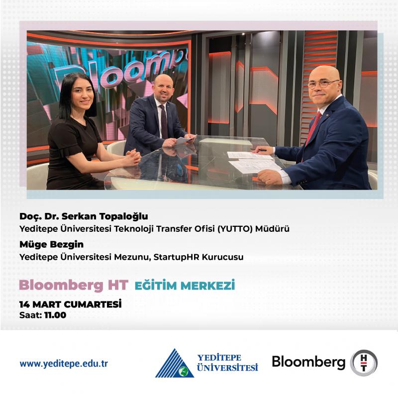 14 Mart 2020 Cumartesi günü, saat 11.00’de, Bloomberg HT’de yayınlanacak olan Egitim Merkezi programında, Yeditepe Üniversitesi Teknoloji Transfer Ofisi (YUTTO) Müdürü Doç. Dr. Serkan Topaloğlu, üniversitelerde teknoloji transfer ofislerinin faaliyetleri hakkında bilgi verirken StartupHR kurucusu Müge Bezgin, Yeditepe Üniversitesi’nde temellerini attığı StarpupHR’ı konu ediniyor.