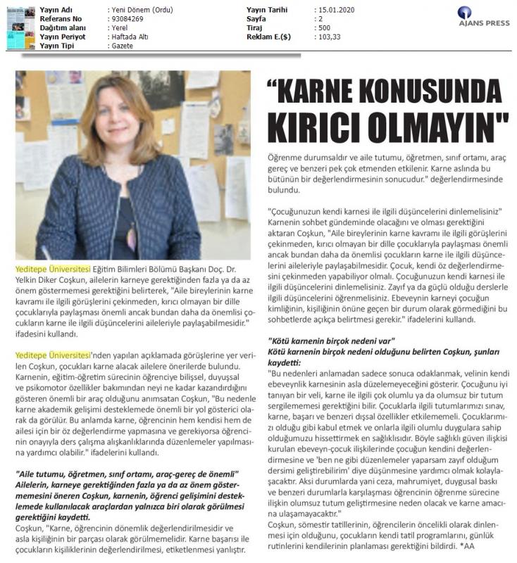 Doç. Dr. Yelkin Diker Coşkun’un önerileri, basında yansıma buldu.