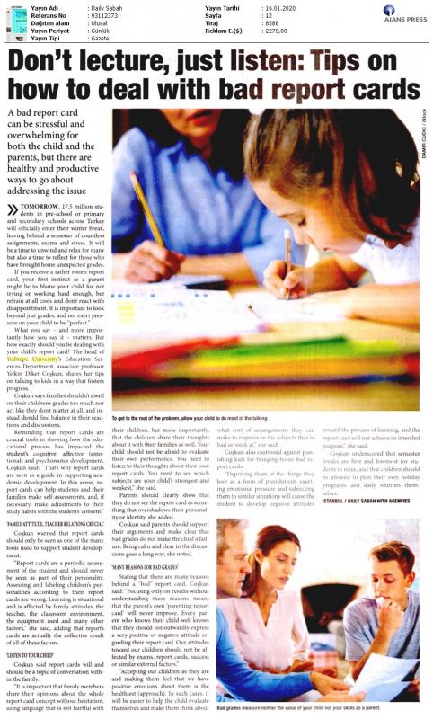 Ailelerin karneye gerektiğinden fazla ya da az önem göstermemesini öneren Yelkin Diker Coşkun, karnenin öğrenci gelişimini desteklemede kullanılacak araçlardan yalnızca biri olarak görülmesi gerektiğini vurguladı. “Karne öğrencinin dönemlik değerlendirilmesidir ve asla kişiliğinin bir parçası olarak görülmemelidir” diyen Doç. Dr. Coşkun, “Karne başarısı ile çocukların kişiliklerinin değerlendirilmesi, etiketlenmesi yanlıştır. Öğrenme durumsaldır ve aile tutumu, öğretmen, sınıf ortamı, araç gereç vb. pek çok etmenden etkilenir. Karne aslında bu bütünün bir değerlendirmesinin sonucudur” ifadelerini kullandı.