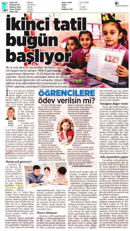 Okul öncesi, ilköğretim ve ortaöğretim okullarındaki yaklaşık 17,5 milyon öğrenci, 17 Ocak Cuma günü karne alarak sömestr tatiline girecek.