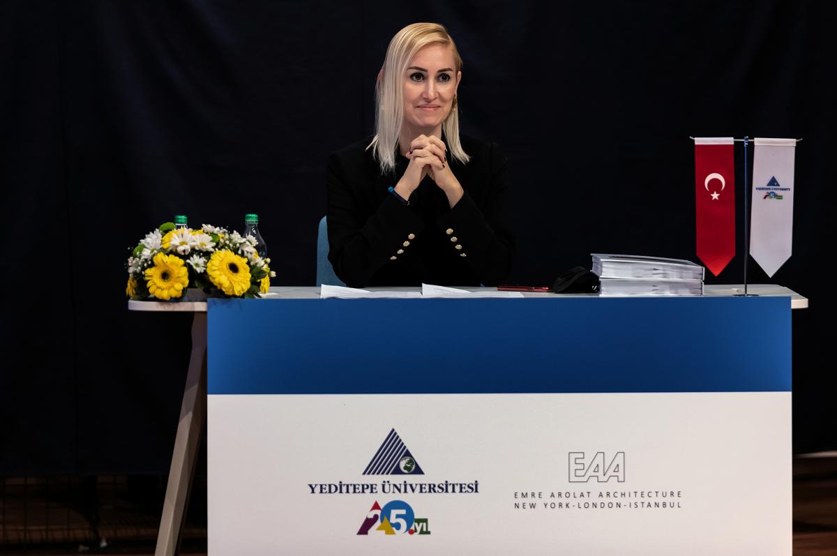 Emre Arolat, sunuş konuşmasında pandemi koşulları nedeniyle zorlu bir süreç olduğunu anımsatarak “Şunu rahatlıkla söyleyebilirim ki, Türkiye’de veya Türkiye dışında çalışan herhangi bir mimarlık bürosu için dahi bu sürede üretilen bu projenin çok üst düzeyde bir niceliğinin olduğunu, niteliği konusunda da çok iddialı olduğumuzu söyleyebilirim. Biz mimarlar önce kendimiz beğenmek isteriz. O yüzden arkadaşlarımız hiç uyumadan çalışıyorlar, o yüzden bu kadar titizleniyoruz, her ayrıntıyı önemsiyoruz. 30 yılı aşkın zamandır mimarlık yapıyorum. Galiba bu coğrafyanın büyük ölçekli projeler üreten en büyük bürolarından bir tanesinin sahibiyim ama bu denli heyecanla ve bu denli büyük bir sorumluluk baskısıyla çalıştığım nadir projelerden bir tanesidir” dedi.