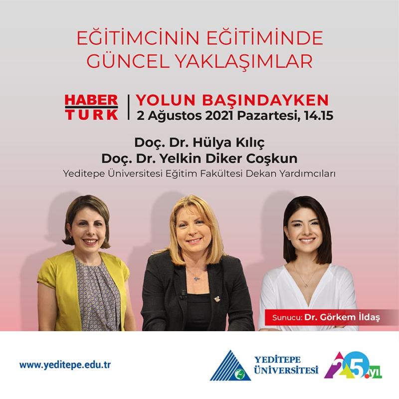 Yeditepe Üniversitesi Eğitim Fakültesi Dekan Yardımcıları Doç. Dr. Hülya Kılıç ve Doç. Dr. Yelkin Diker Coşkun, 2 Ağustos 2021, Pazartesi günü, saat 14.15’te, Habertürk televizyonunda yayınlanan Yolun Başındayken programında, Dr. Görkem İldaş'ın konuğu oluyor. Doç. Dr. Hülya Kılıç ve Doç. Dr. Yelkin Diker Coşkun, eğitim fakültelerinde güncel yaklaşımlar konusunda görüşlerini paylaşırken eğitimcinin kariyerinin nasıl planlanması gerektiğine ilişkin bilgiler veriyor.