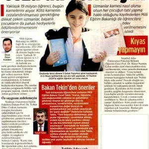 “Karne genel durumu anlayabilmek için kullanılan bir değerlendirme aracı olarak görülmeli ve çatışma konusu yapılmamalıdır” ifadelerini kullanan Prof. Dr. Coşkun, “Karne ile ilgili yanlış ebeveyn tutumu, söylenen incitici sözler öğrencilerin içinde bulundukları gelişim dönemlerine göre farklı şekillerde etki eder, öz saygılarını zedeleyebilir. Anne babaların karne notlarına kızması sonucu değiştirmeyecektir. Bu nedenle karnede akademik performans düşük ise artırmaya ilişkin öğrenci ile birlikte çözüm üretilmelidir. Hangi ders ya da derslerde nasıl bir desteğe ihtiyacı olduğu, ders çalışma alışkanlıkları, ev içi rutinler aile ile birlikte düzenlendiğinde başarıyı olumlu etkileyecektir” diye konuştu.
