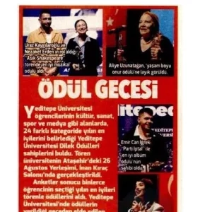 Yeditepe Üniversitesi öğrencilerinin kültür, sanat, spor ve medya gibi alanlarda, 24 farklı kategoride yılın en iyilerini belirlediği Yeditepe Üniversitesi Dilek Ödülleri sahiplerini buldu. Üniversitelerde sosyal sorumluluk alanında yapılan ilk ödül töreni olma özelliğini taşıyan Yeditepe Üniversitesi Dilek Ödülleri töreninin 11’incisi, üniversitenin Ataşehir’deki 26 Ağustos Yerleşimi, İnan Kıraç Salonu’nda gerçekleştirildi.