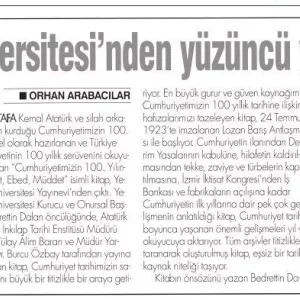 Cumhuriyetimizin 100. Yılına özel olarak hazırlanan ve Türkiye Cumhuriyetinin 100 yıllık serüvenini okuyucuya sunan “Cumhuriyetimizin 100. Yılında Devlet, Ebed, Müddet” isimli kitap, Yeditepe Üniversitesi Yayınevi’nden çıktı