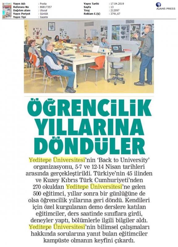 Yeditepe Üniversitesi’nin “Back to University” organizasyonu, 5-7 ve 12-14 Nisan tarihleri arasında gerçekleştirildi.