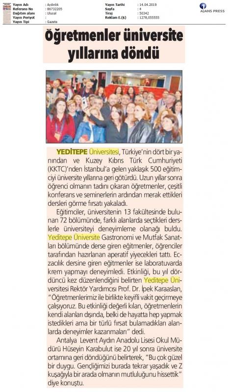 Türkiye’nin 45 ilinden ve Kuzey Kıbrıs Türk Cumhuriyeti’nden 270 okuldan Yeditepe Üniversitesi’ne gelen 500 eğitimci, yıllar sonra bir günlüğüne de olsa öğrencilik yıllarına geri döndü. Kendileri için özel kurgulanan demo derslere katılan eğitimciler, ders saatinde sınıflara girdi, deneyler yaptı, bölümlerle ilgili bilgiler aldı. Yeditepe Üniversitesi’nin bilimsel çalışmaları hakkında sorularına yanıt bulan eğitimciler, kampüste olmanın keyfini çıkardı.