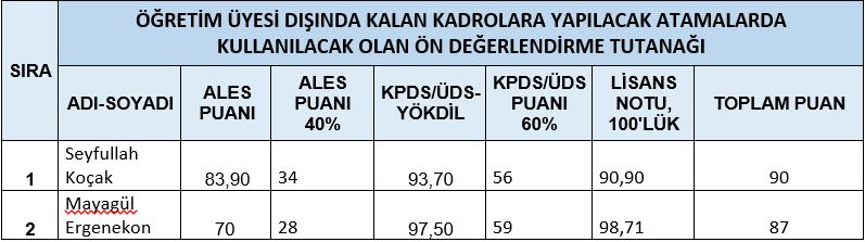 18.10.2021 tarihinde Resmi Gazetede yayınlanan Üniversitemiz Fen-Edebiyat Fakültesi Çeviribilimi Bölümünde ilan edilen 2 adet Öğretim Görevlisi kadrosuna yapılan başvurular değerlendirilmiş olup, ön değerlendirme sonuçlarına göre aşağıda isimi yazılı kişiler 04.11.2021 tarihinde saat: 10.00, Fen-Edebiyat Fakültesi, GSF Binası, Çeviribilim Bölüm Başkanlığı Ofisi’nde yapılacak olan sınava girmeye hak kazanmışlardır.