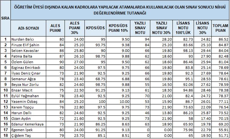15.11.2021 tarihinde Resmi Gazetede yayınlanan Üniversitemiz Fen-Edebiyat Fakültesi Çeviribilimi Bölümünde ilan edilen 2 adet Araştırma Görevlisi kadrosu için yapılan sınav sonucunda nihai değerlendirme sonuçlarına göre aşağıda isimleri yazılı kişiler açık bulunan Araştırma Görevlisi kadrosuna atanmaya hak kazanmışlardır.