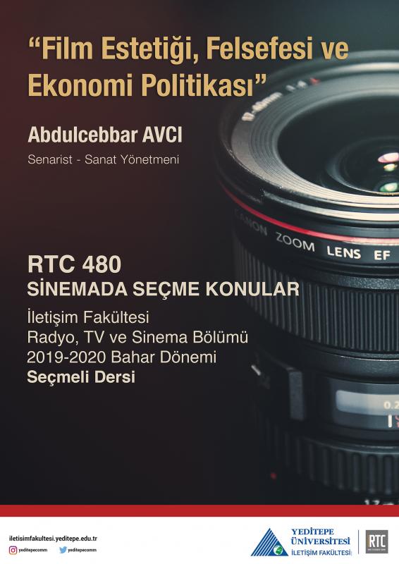 "Film Estetiği, Felsefesi ve Ekonomi Politikası" konularının ele alındığı ve Senarist - Sanat Yönetmeni Abdulcebbar Avcı tarafından verilecek olan RTC 480 Sinemada Seçme Konular dersi, tüm üniversite geneline açıktır.