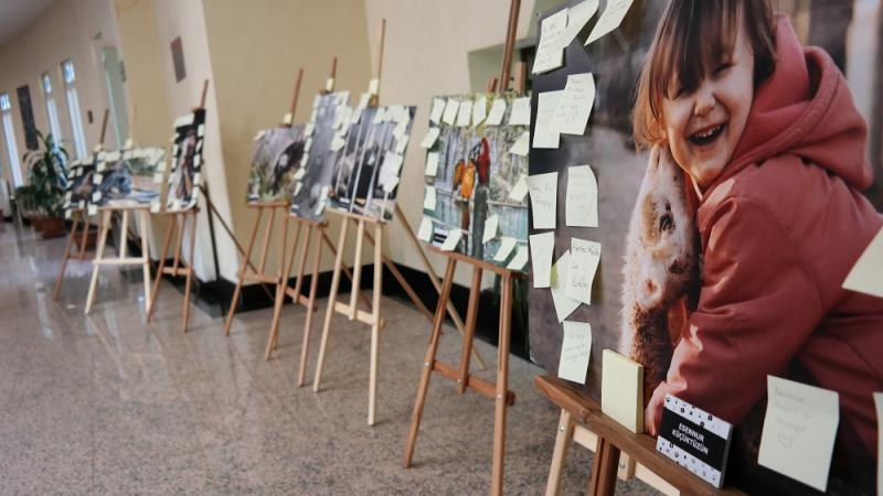 Fotoğrafların üzerine konulan kağıtlara notlar yazarak bırakan öğrenciler sergiyi daha da eğlenceli hale getirdi. Sosyal tesislerde 1. katta kurulan sergi 14 Ekim tarihine kadar açık kalacak.