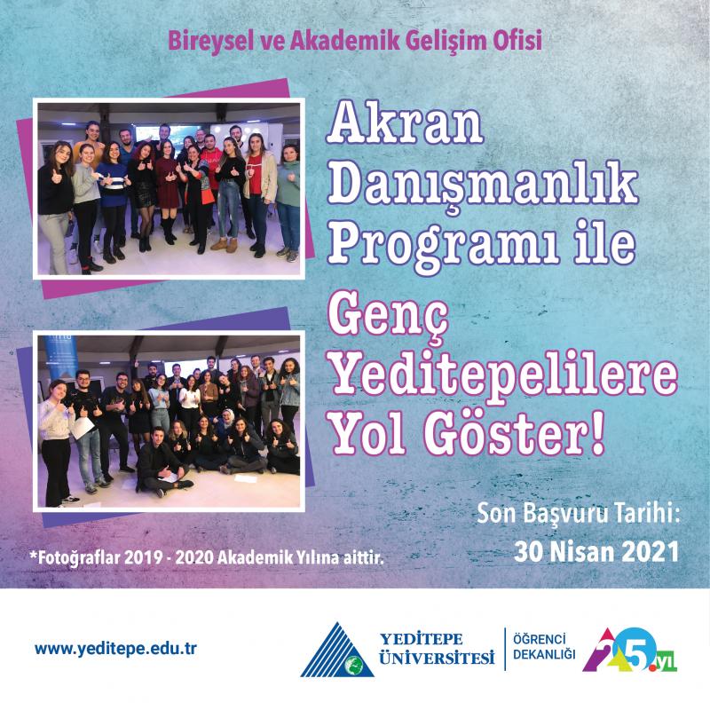 Akran danışmanlığı ile yeni gelen Yeditepe öğrencilerinin üniversitemize uyum sürecini kolaylaştırırken, ilerideki iş yaşamında seni öne çıkaracak iletişim, koçluk, problem çözme, organizasyon gibi önemli becerileri geliştirme fırsatı yakalayacaksın.