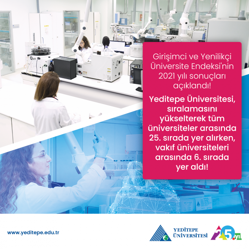 TÜBİTAK tarafından 2012 yılından bu yana açıklanan Girişimci ve Yenilikçi Üniversite Endeksi'nin 2021 yılı sonuçları açıklandı. Yeditepe Üniversitesi, sıralamasını yükselterek tüm üniversiteler arasında 25. sırada yer alırken, vakıf üniversiteleri arasında 6. sırada yer aldı!