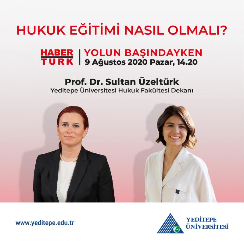 Üniversitemiz Hukuk Fakültesi Dekanı Prof. Dr. Sultan Üzeltürk, 9 Ağustos 2020 Pazar günü, saat 14.20’de, Habertürk televizyonunda yayınlanan Yolun Başındayken programında, Dr. Görkem İldaş'ın konuğu oluyor. Prof. Dr. Sultan Üzeltürk, hukuk eğitimi almak isteyen üniversite adayları için çok önemli önerilerde bulunuyor.