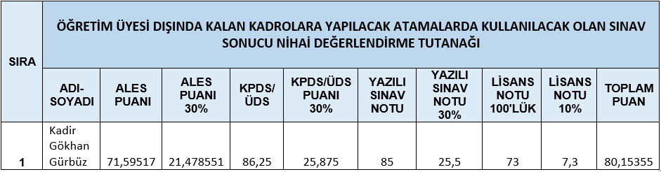 15.11.2021 tarihinde Resmi Gazetede yayınlanan Üniversitemiz İletişim Fakültesi Görsel İletişim Tasarımı Bölümü’nde ilan edilen 1 adet Öğretim Görevlisi kadrosu için yapılan sınav sonucunda nihai değerlendirme sonuçlarına göre aşağıda isimleri yazılı kişi/kişiler açık bulunan Öğretim Görevlisi kadrosuna atanmaya hak kazanmışlardır.