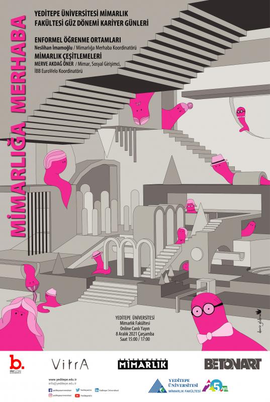 Mimarlık Fakültesi Güz Dönemi Kariyer Etkinlikleri kapsamında 8 Aralık Çarşamba günü saat 15:00 - 17:00 arasında Binat İletişim & Danışmanlık ve VitrA desteğiyle "Mimarlığa Merhaba" isimli online konferans düzenlenecektir. İlgilenen öğrencilerimiz ve akademisyenlerimiz davetlidir.