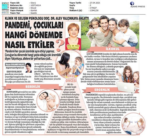 Üniversitemiz Psikoloji Bölümü Başkanı Doç. Dr. Alev Yalçınkaya'nın dört farklı yaş dönemine yönelik önerileri Sözcü gazetesinde yer aldı.