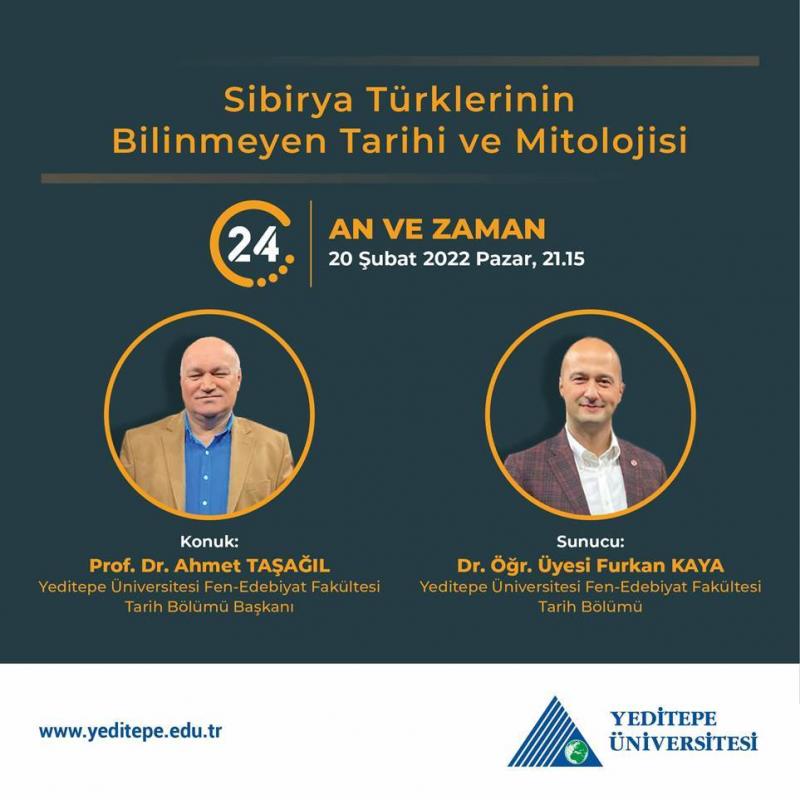Yeditepe Üniversitesi Fen-Edebiyat Fakültesi Tarih Bölümü Dr. Öğr. Üyesi Furkan Kaya moderatörlüğünde, Pazar saat 21.15'te "An ve Zaman" programına konuk olan Yeditepe Üniversitesi Fen-Edebiyat Fakültesi Tarih Bölümü Başkanı Ahmet Taşağıl, Sibirya Türklerinin bilinmeyen tarihi ve mitolojisi hakkında konuşuyor. Bu keyifli programı kaçırmayın!
